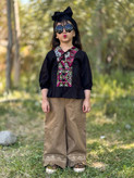 شومیز شلوار ست دخترانه مشکی لنین کتان سوزندوزی